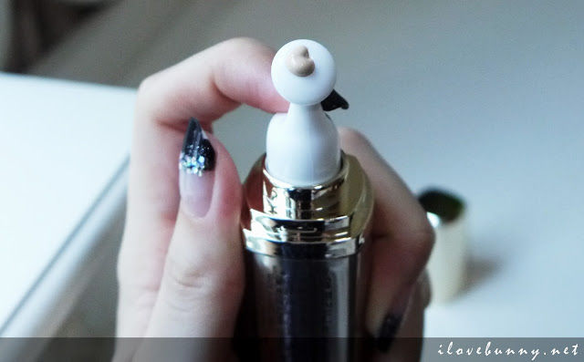 I switched on the higher power and the foundation immediately flow down slightly as shown below. So I highly recommend you to eject only a small amount of foundation each time to prevent the liquid from dripping off the machine.